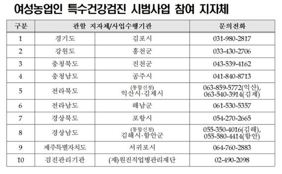 검진 희망자는 5월 20일까지 주소지 읍·면·동 행정 복지 센터에 신청서를 접수하면 되고 사전 수요 조사 때 신청서를 제출한 여성 농업 인은 따로 신청하지 않아도 된다.