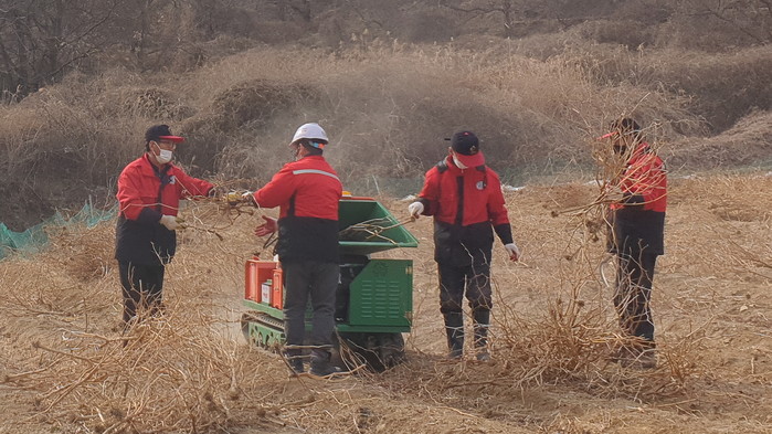영농부산물 파쇄작업은 산불 예방뿐만 아니라 소각으로 발생하는 미세먼지 저감ㆍ파쇄 잔재물 퇴비 활용 효과가 있으며, 무엇보다 영농부산물 처리의 번거로움을 덜 수 있어 농가에서도 크게 환영하고 있다.
