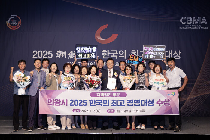 | ▲의왕시가 16일 서울 중구 더플라자호텔 그랜드볼룸에서 열린‘2025 한국의 최고 경영대상’시상식에서 지역발전 부문 수상의 영예를 안았다 /사진제공=의왕시 |