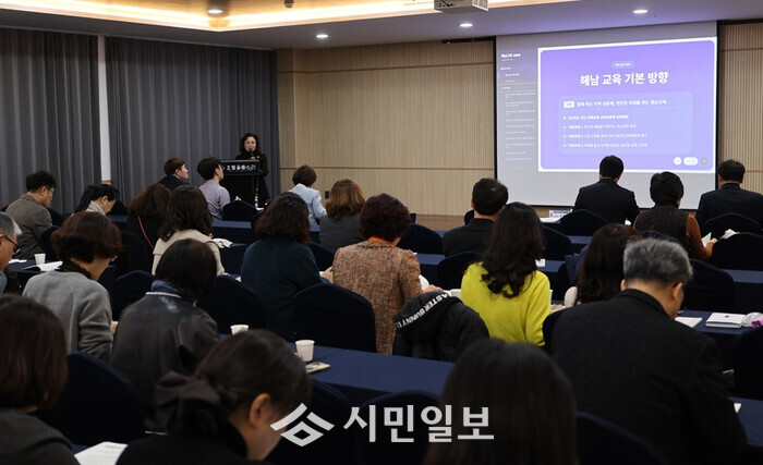 해남교육지원청은 설명회를 통해 지역의 역사와 삶을 교육과정과 연계하는 해남다움, 학생 한 사람 한 사람의 성장을 중심에 두는 인간다움, AI·디지털 전환 시대에 대응하는 미래다움을 해남교육의 핵심 가치로 제시하고, 학교·지역·교육지원청이 함께 책임지는 교육공동체 구축을 강조했다.