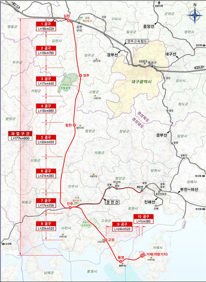 ‘사업계획 적정성 재검토’에는 △열차 운행횟수 증대를 감안한 신호장* 추가 △도로 및 하천계획을 고려한 교량계획 조정 △터널 굴착공법 안전성 보강 △역사 건축 면적(합천, 진주, 고성, 통영, 거제) 증대 △자연환경 훼손 최소화를 위한 보강공법 적용 △지역별 환경, 민원해소를 위한 철도시설 마련 등이 반영되어, 기본계획 총사업비 4조 9438억 원에서 6조 6460억 원으로 약 1조 7000억 원이 증액되었다.