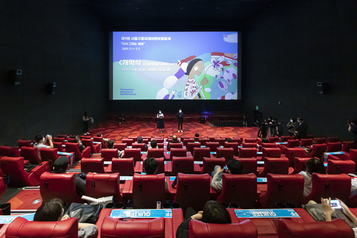 | ▲ 2021년 서울 구로 국제 어린이 영화제 개막식이 씨네Q 신도림 2관에서 진행되고 있다. (사진제공=구로구청) |
