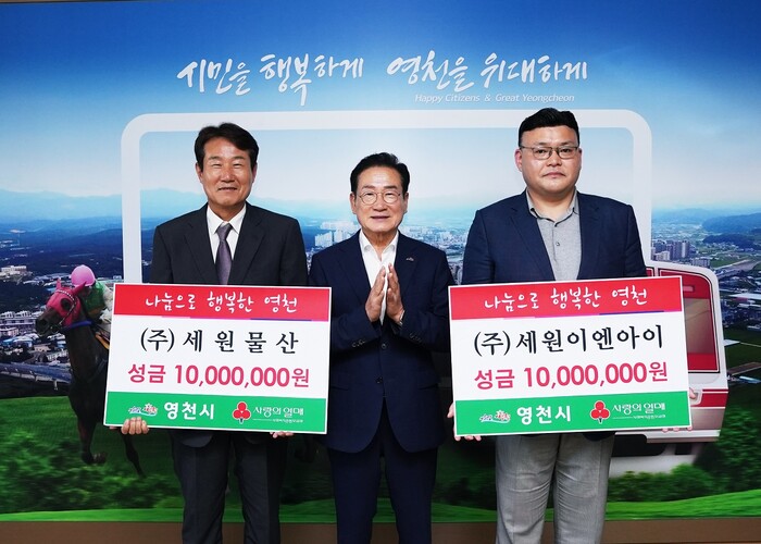 최기문 영천시장은 “나눔과 상생의 가치를 실천해주신 ㈜세원물산·(주)세원이엔아이에 진심으로 감사드린다”며 “나눔을 통해 지역사회와 기업이 함께 발전하는 선순환 구조를 만들어가기 위해 최선을 다하겠다”고 말했다.