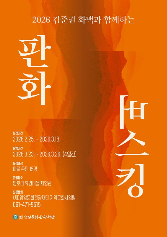 참가신청은 오는 20일까지 가능하며, (재)영암문화관광재단 지역문화사업팀으로 접수하면 된다.