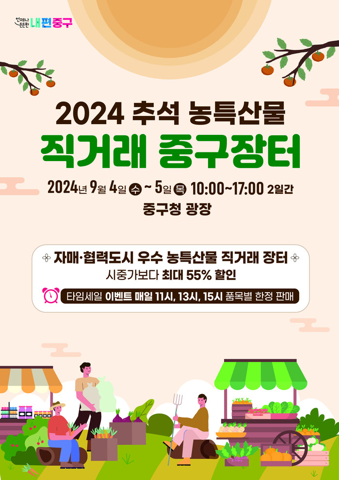[시민일보 = 여영준 기자] 서울 중구가 추석을 맞이해 오는 4~5일 구청 앞 광장에서 직거래 장터를 운영한다.