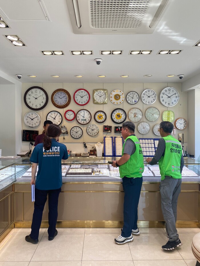 이번 활동은 범죄예방진단팀(CPO)가 관내 금은방 3개소, 신규 개업한 편의점 3개소 방문하여 비상벨, CCTV 등 방범시설물 이상 유무 확인과 업주 대상으로 최근 금은방 강·절도 사례와 112신고 요령을 설명하였다.