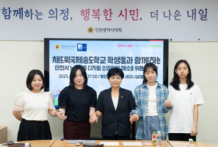 시의회에 따르면 유 의원은 18일 인천시의회 행정안전위원회 세미나실에서 채드윅국제송도학교 학생들과 함께하는 인천시 노인 계층 디지털 소외현상 해소를 위한 간담회를 개최했다.