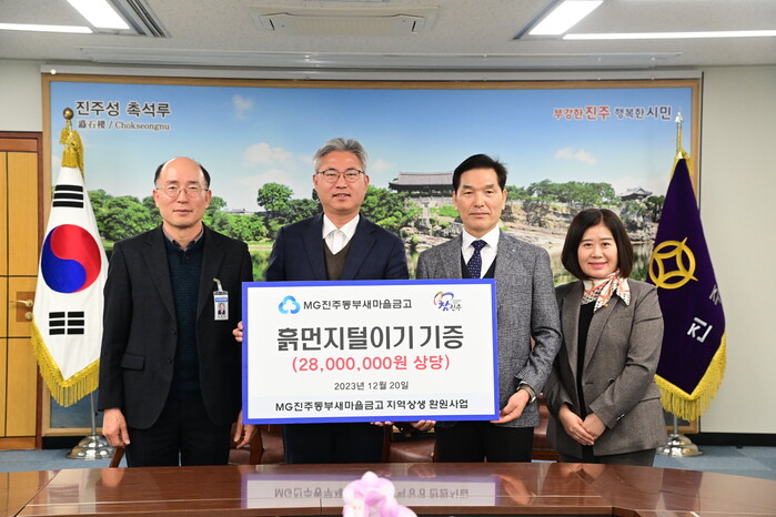이날 기탁식에는 신종우 진주부시장과 김천수 도시건설국장, 진주동부새마을금고 강성근 이사장, 정영순 전무 등 진주시와 새마을금고 관계자들이 참석했다.
