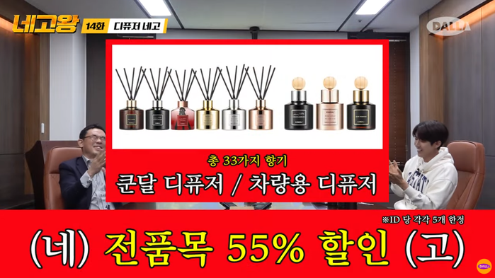 이로서 쿤달 디퓨저 세트 및 디퓨저 전품목 55% 할인 네고를 성공시킨 황광희. 추가적으로 디퓨저 품목뿐만 아니라 쿤달의 베스트 제품 20개를 추가 네고 성공을 통해 향기왕의 진땀을 빼놨다.