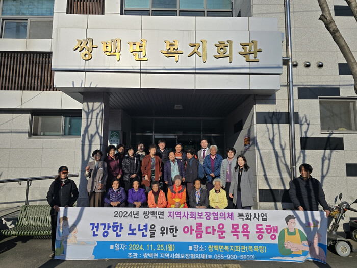 이 사업은 대중목욕탕 이용이 어려운 70세 이상 어르신과 관내 어려운 이웃을 대상으로 목욕 동행과 간식을 지원하는 쌍백면 지역사회보장협의체의 특화사업으로, 어르신들의 삶의 질 향상과 지역 복지사업의 확충에 기여하고 있다. 올해는 특히 쌍백면 각 마을 이장들이 어르신들의 이동 지원에 동참해 더 많은 분들이 혜택을 받을 수 있었다.