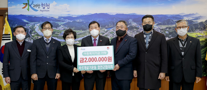 김윤철 군수는 “아이들을 위한 따뜻한 마음에 감사를 드리며, 아이들과 더불어 희망찬 합천을 만들기 위해 바르게살기운동 회원분들의 많은 활동을 부탁드린다”고 전했다.