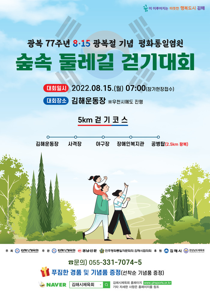 김해시 관계자는“숲 길을 걸으며 건강도 챙기고 조국 광복을 위해 헌신하신 순국 선열들을 생각하며 광복절의 의미를 되새기는 뜻 깊은 하루가 되기를 바란다.”고 밝혔다.