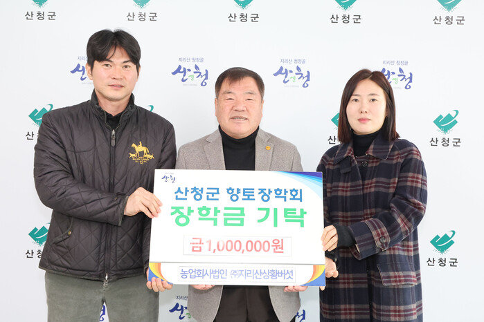 5일 산청군향토장학회는 산청군전기공사협의회, 농업회사법인 ㈜지리산상황버섯, 산청군산림조합이 군청을 찾아 향토장학금을 1000만원, 100만원, 1000만원을 각각 기탁했다고 밝혔다.