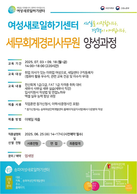 자세한 사항은 송파여성인력개발센터 홈페이지 내 공지사항을 통해 확인할 수 있다.