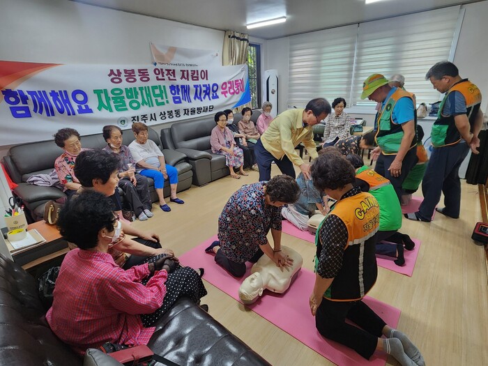 [진주=엄기동 기자] 진주시 상봉동 지역자율방재단은 지난 15일 생활 속 안전사고 예방을 위해 지역내 노인을 대상으로 심폐소생술 교육을 실시했다.