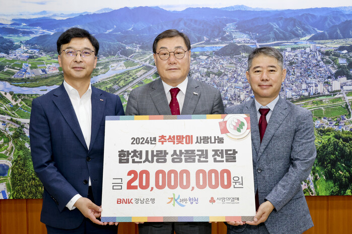 김윤철 합천군수는 “매년 명절마다 어려운 이웃들을 위해 성품을 기탁해 주시는 경남은행에 감사드린다. 필요한 분들에게 따뜻한 마음까지 전달될 수 있도록 최선을 다하겠다”고 말했다.