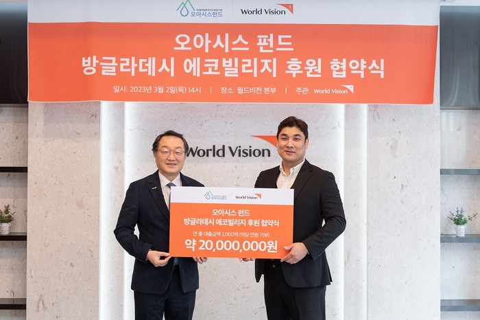 국제구호개발 NGO 월드비전(회장 조명환)은 지난 2일 오후 2시 월드비전 본부 패밀리 룸에서 온투업 금융 오아시스펀드(대표 김성길)와 ‘방글라데시 에코빌리지 후원 협약식’을 실시했다.