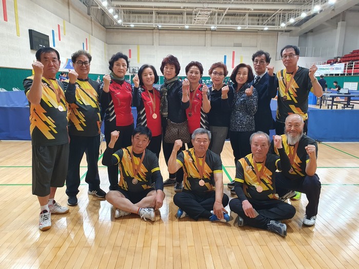 [합천=이영수 기자] 합천라지볼 탁구클럽(회장 강철권)이 제33회 경상남도 생활체육대축전 어르신부 탁구대회에 합천군을 대표해 클럽 단일팀으로 출전해 3위를 차지했다.