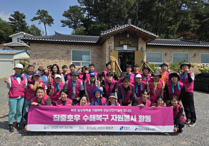 구는 24일 충남 서산시, 25일 경기 가평군에 자원봉사자 70명을 파견해 토사 제거, 침수 주택 정리, 폐기물 수거 등 피해 복구 작업을 돕는다. 강남구 자원봉사센터 주관으로 진행되는 이번 활동으로 각 지역의 빠른 일상 복귀를 지원할 예정이다.
