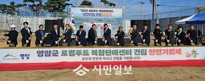 | ▲ 우승희 영암군수(사진 가운데)가 지난 14일 삼호읍 삼호대교 인근에 마련된 '영암군 로컬푸드 복합판매센터’ 착공식에 참석해 내빈 등과 시삽을 하고 있다. / 영암군 제공 |
