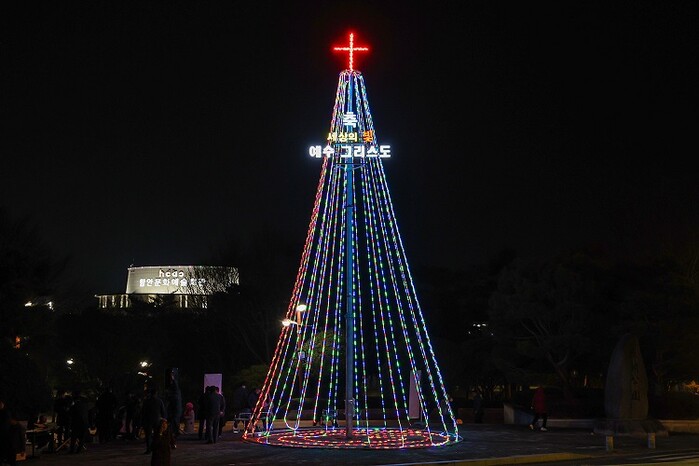 함안군기독교연합회(회장 정진경 목사) 주최로 열린 이날 점등식은 조근제 함안군수를 비롯해 함안군기독교연합회 회원, 교회 성도와 함안군청 신우회 회원 등 100여 명이 참석한 가운데 예배, 축사, 점등, 기념촬영 순으로 진행됐다. 점등된 트리는 내년 1월까지 빛을 밝히게 된다.