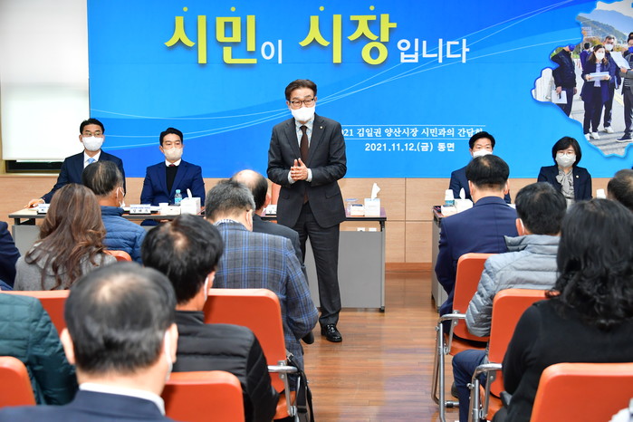 김일권 양산시장이 시민들과의 직접 마주하며 소통의 자리를 마련하기 위해 추진했던 읍·면·동‘시민과의 간담회’가 2주간의 일정이 성황리에 마무리 됐다.