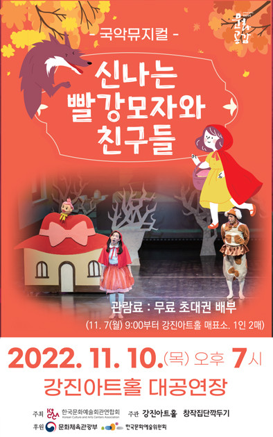 | ▲ 국악뮤지컬 '신나는 빨강모자와 친구들' 공연 포스터 / 강진군 제공 |