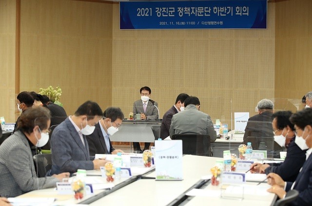 [강진=정찬남 기자] 전남 강진군은 16일, 다산청렴수련원에서 이승옥 강진군수와 군 정책자문단 등 관계자 40여 명이 참석한 가운데 정책자문단 하반기 정례회의를 가졌다.