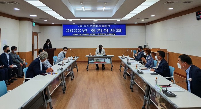 [강진=정찬남 기자] (재)강진군문화관광재단은 지난 30일 강진군청 소회의실에서 김바다 대표이사를 비롯한 이사, 감사 등 15여 명이 참석한 가운데 ‘2022년도 정기이사회’를 개최했다.