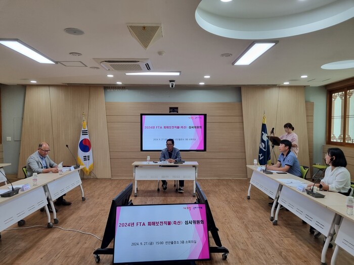 [구미=박병상 기자]경북 구미시가 지난 27일 선산출장소에서 구미칠곡축협 조합장, 축산단체 대표 등 7명이 참석한 가운데 FTA 피해보전직불 축산분야 심사위원회를 열었다.
