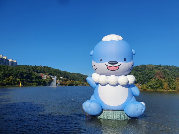 전국캐릭터대회 대상을 받아 한창 인기몰이 중인 하모는 지난 20일부터 금산면 금호지에 공공미술품으로 다시 전시돼 관광객들에게 볼거리를 제공하고 있다.