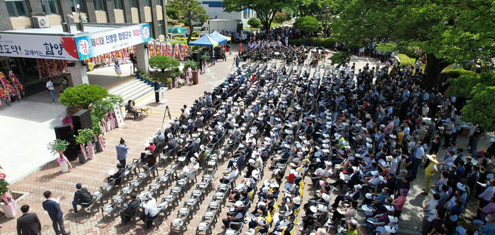 7월 1일 오전 10시 군청 광장에서 열린 진병영 군수 취임식에는 도의원·군의원, 기관·사회단체장, 향우회, 지역주민 등 500여명이 참석하여 민선8기 함양군의 힘찬 출발을 응원했다.