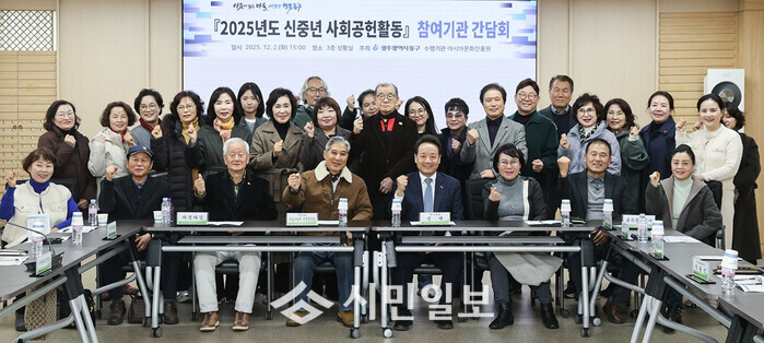 | ▲ 광주광역시 동구, 지난 2일 구청 상황실에서 ‘2025년 신중년 사회공헌활동 지원사업’에 참여한 19개 기관 대표 대상 간담회 개최 후 기념촬영 / 광주광역시 동구청 제공 |