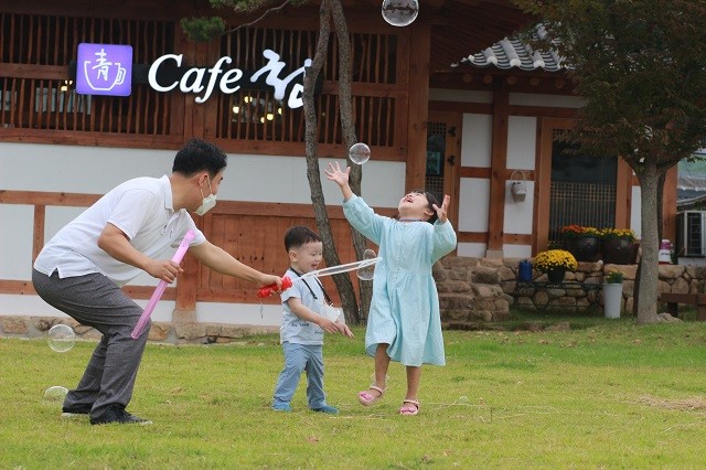 | ▲ 강진군이 지난 10월 실시한 '2021년 제3회 행복한 남성육아사진 공모전' 에서 최고상을 수상한 강진읍 박상표씨의 ‘아빠와함께 비눗방울 춤을’ 작품 / 사진=강진군 제공 |