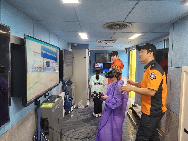 체험 부스에는 ▲마네킹 등을 활용한 심폐소생술 및 자동제세동기(AED) 사용법 ▲물소화기 체험 ▲VR 화재, 지진 등 재난대피 ▲소화기 사용법 등 다양한 프로그램으로 구성됐다.