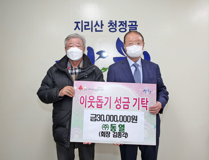 한편 사회복지법인 동일은 설 명절을 맞아 산청군 기탁을 비롯해 장애인복지사업, 노인 무료급식소와 저소득층 지원을 위해 부산진구청, 기장군, 양산시, 창원시, 거제시 등에 약 1억 5000만원을 기탁했다고 밝혔다.