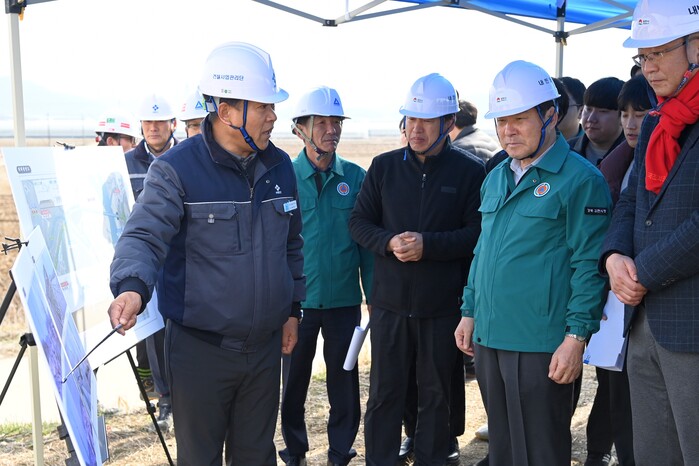 [김천=박병상 기자] 김충섭 김천시장은 해빙기를 맞이하여 지난 7일 감문면 태촌리와 아포읍 의리를 연결하는 감포교 자연재해 위험개선지구 정비사업 공사 현장을 방문해 시공 과정과 안전관리의 전반적인 현황에 대한 보고를 받고 공사에 관한 견실 시공과 현장관리에 완벽히 할 것을 당부했다.
