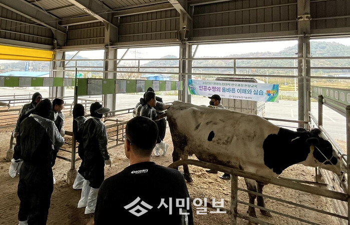 특히, 영암축협이 제공한 실습용 소를 활용해 학생들은 어려움을 겪고 있는 자가수정 기술 등 수정 과정 전반을 체험했다.