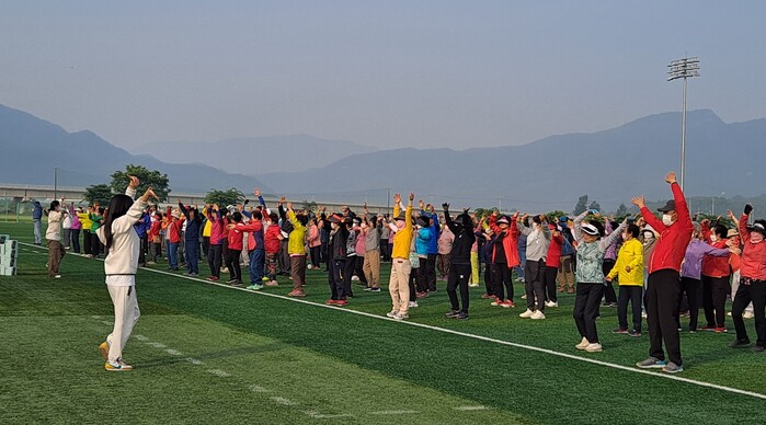 용주면 체육회(회장 문병현)가 주관한 이번 걷기대회는 생활체육지도사의 구령에 맞춰 신나는 음악과 함께한 몸풀기 체조를 시작으로 용주체육공원 둘레길 3km 코스를 걸으며 따뜻한 봄날을 만끽할 수 있는 시간을 가졌다.