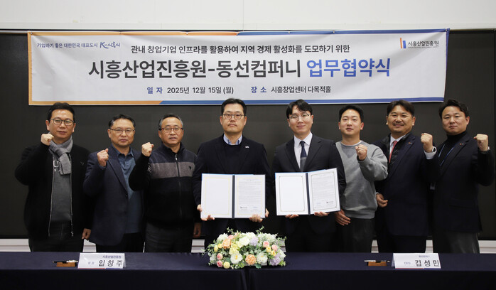 [시흥=송윤근 기자] 경기 시흥산업진흥원(원장 임창주)은 12월 15일(월), 시흥창업센터에 입주한 창업기업인 동선컴퍼니(대표 김성민)와 ‘창업기업 인프라를 활용한 지역 상권 활성화’를 목적으로 업무협약(MOU)을 체결했다.