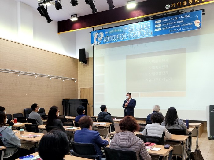 함안군은 지난 21일 가야어울림센터에서 수강생과 관계자 등 40여 명이 참석한 가운데 ‘함안군 도시재생 문화기획자 양성과정’을 개강하고, 본격적인 운영에 들어갔다. 개강식에는 함안군수가 참석해 수강생들을 격려했다.