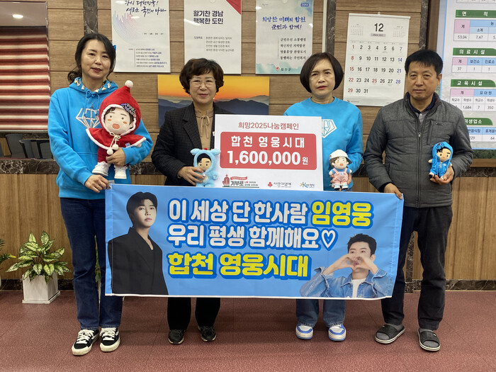 오미화 합천읍장은 “모두가 다같이 어려운 시기에 소중한 성금을 기탁해 주신 합천 영웅시대 회원분들께 감사드리며, 이 마음이 널리 전파되어 많은 분이 따뜻한 연말을 보내셨으면 좋겠다”고 말했다.