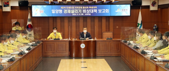 밀양시는 제3차 민생안정 지역경제 활성화 특별대책 추진 상황을 점검하기 위해 31일 밀양형 경제살리기 1분기 추진 보고회를 개최했다.
