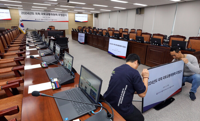 민주당 원내관계자는 "지난 1년의 국정을 점검하는 자리가 돼야 할 국감이지만 정말 안타깝게도 거의 모든 상임위에 김건희 여사 관련 의혹 이슈들이 줄줄이 걸려있는 상황"이라고 말했다.