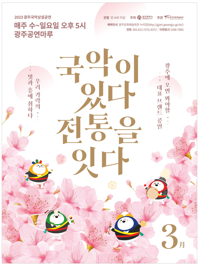 ‘광주국악상설공연’은 시립예술단과 민간예술단체가 참여해 전통·창작·퓨전국악 등 광주만의 특색을 담은 국악의 즐거움으로 채워가는 광주 대표 브랜드공연이다.