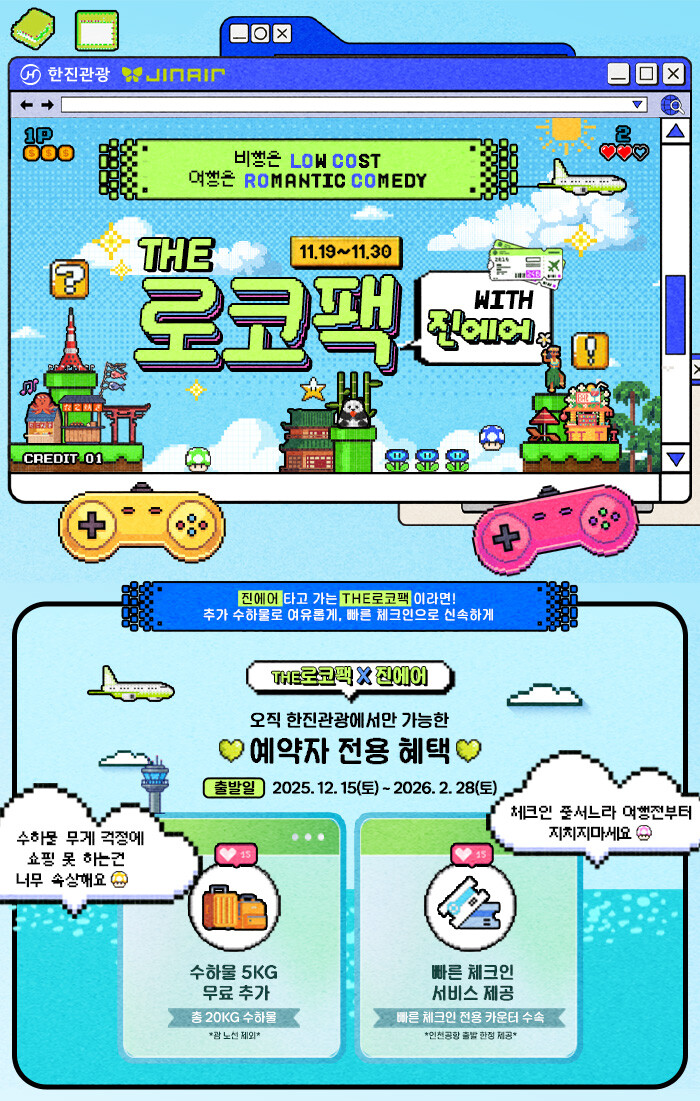 특히 이번 '진에어 THE 로코팩' 상품은 단순한 항공권 특가를 넘어, LCC 이용 시 고객이 가장 필요로 하는 실질적인 부가 서비스를 무료로 포함한 것이 핵심이다.