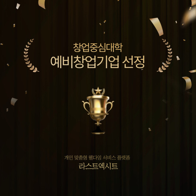 창업중심대학은 대학의 우수 인프라 활용을 통한 성장단계별 (예비)창업기업 발굴·육성을 하여 창업기업의 역량 강화를 지원해주는 사업이다. 라스트엑시트는 창업중심대학 예비창업 선정기업으로 합격 선정의 쾌거를 이루었다.