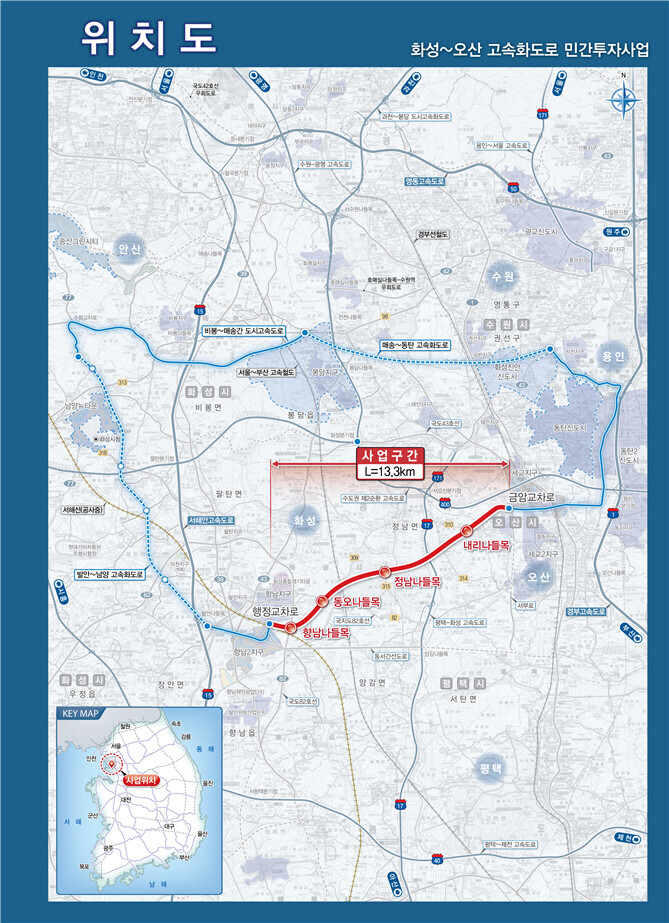 | ▲화성~오산 고속화도로 위치도 /자료제공=화성특례시 |