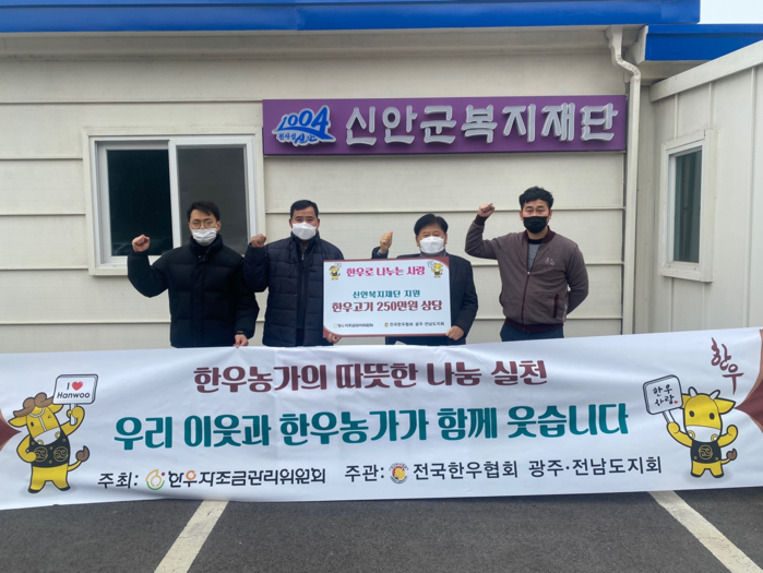 | ▲ (사)전국한우협회, 신안군복지재단에‘한우나눔’실천(출처=신안군 복지재단) |