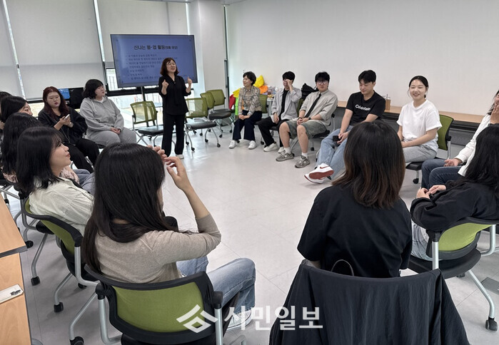 | ▲ 청년도전 지원사업 참여자들 간 아이스브레이킹 진행 자료사진 / 북구청 제공 |